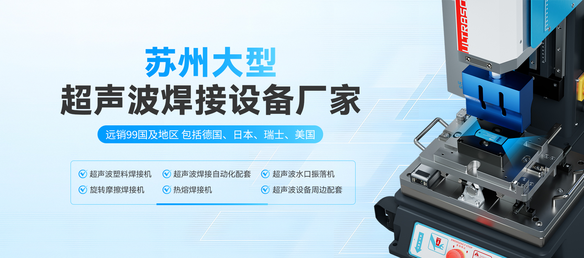 優(yōu)質(zhì)服務為海內(nèi)外各行業(yè)、企業(yè)提供了大量穩(wěn)定性強的優(yōu)質(zhì)超聲波塑焊設備及應用解決方案